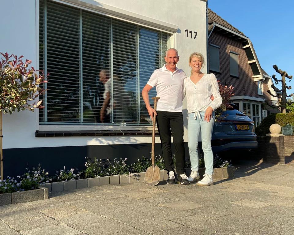 Jos en Miep Snel hebben een geveltuin aangelegd voor hun woning aan het Oosteinde. Ze zijn blij met het nieuwe beleid van de gemeente, waarbij geveltuintjes in de openbare ruimte – onder voorwaarden – mogen worden gemaakt. “De stoep fleurt zo mooi op en de overburen waren ook blij”, meldt echtpaar Snel.